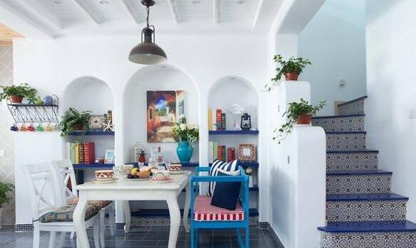 地中海風(fēng)格之所以備受我國人喜歡就是因為它純美的色彩組合。其中比較有地域性的三種典型的顏色搭配就是西班牙蔚藍(lán)色的海岸和白色沙灘;希臘的白色村莊與沙灘和碧海、藍(lán)天融合成一體,還有就是北非特有的沙漠、巖石等等。