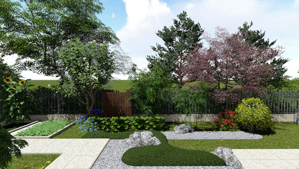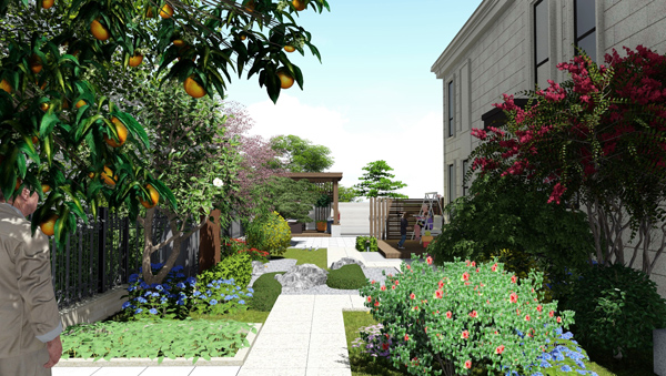 創(chuàng)作源于對(duì)生命自然的感知,遵循自然之道以綠化為主,不過分夸張。適當(dāng)點(diǎn)綴小品,做到四季有花四時(shí)有景。
