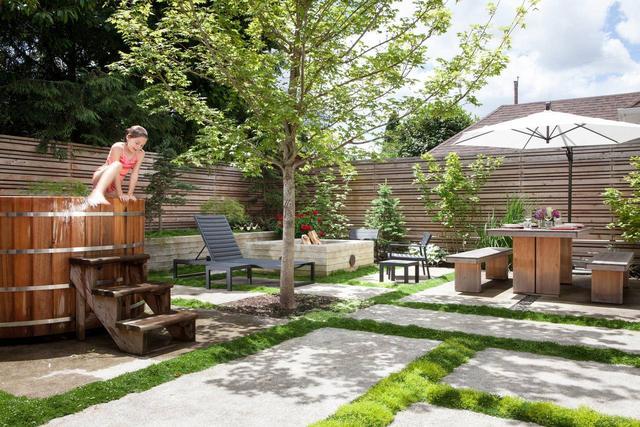 在庭院休閑區(qū)打造戶外游樂區(qū),一定要有一片柔軟的綠茵草坪,草坪周圍盡量不要有太多臺階,方便孩子們奔跑。草坪上可以搭建一個帳篷,在陽光明媚午后,孩子們圍坐在一起聽父母講故