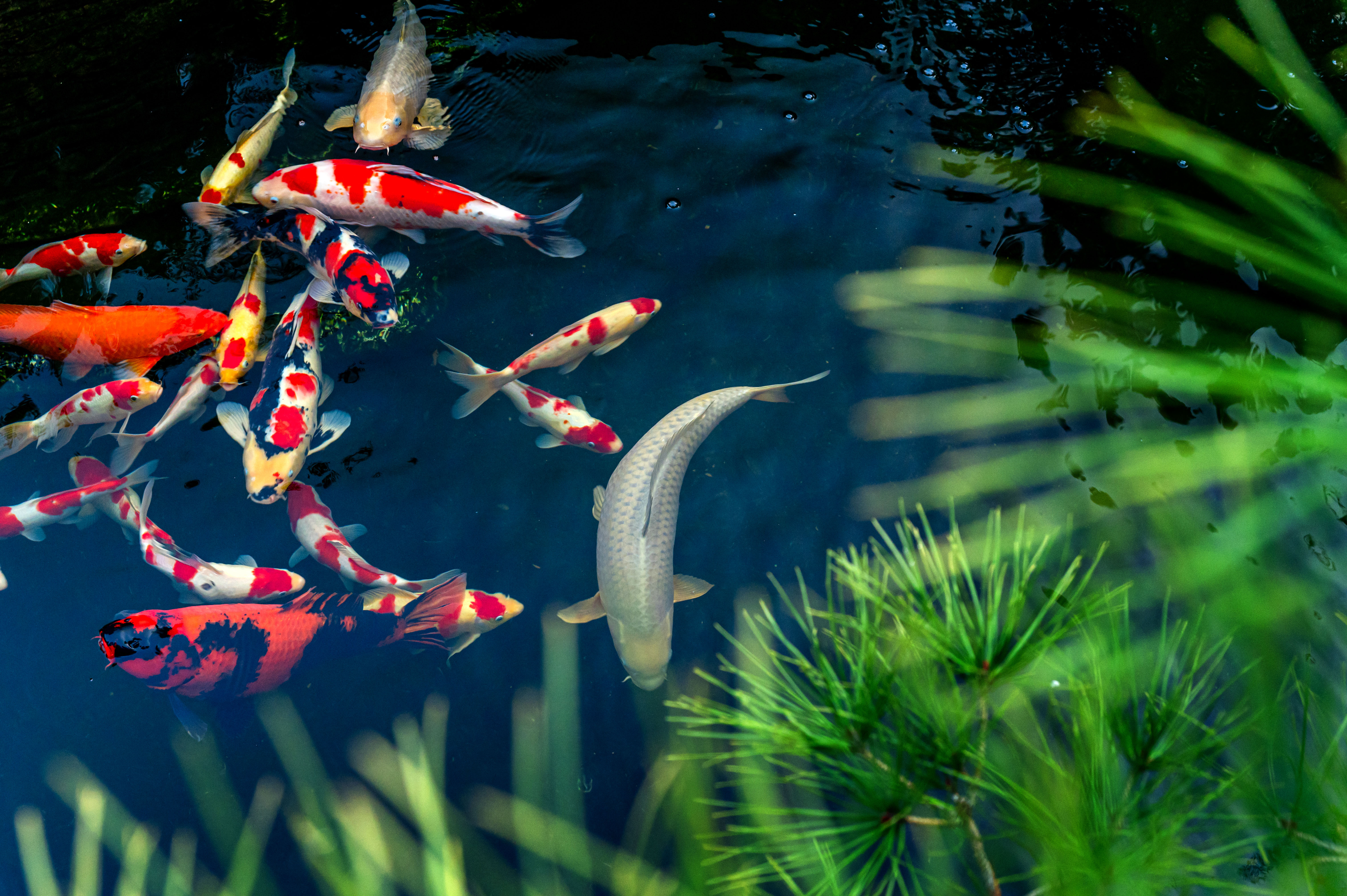 通過對現(xiàn)有魚池山石進行修復(fù),利用“新”凈化循環(huán)技術(shù)把水做活做凈,讓池中水清澈透明,可見游魚。觀魚,觀的是游魚戲水的靈動姿態(tài)。置石引泉,迎松入境,居有流泉,便有了靈氣,觀池中錦鯉,樹影浮動,亦動亦靜的風(fēng)景里,三兩知己,生一爐炭,煮一碗茶,總歸是愜意,愿隨草木飲清茶,且與山水共清歡。