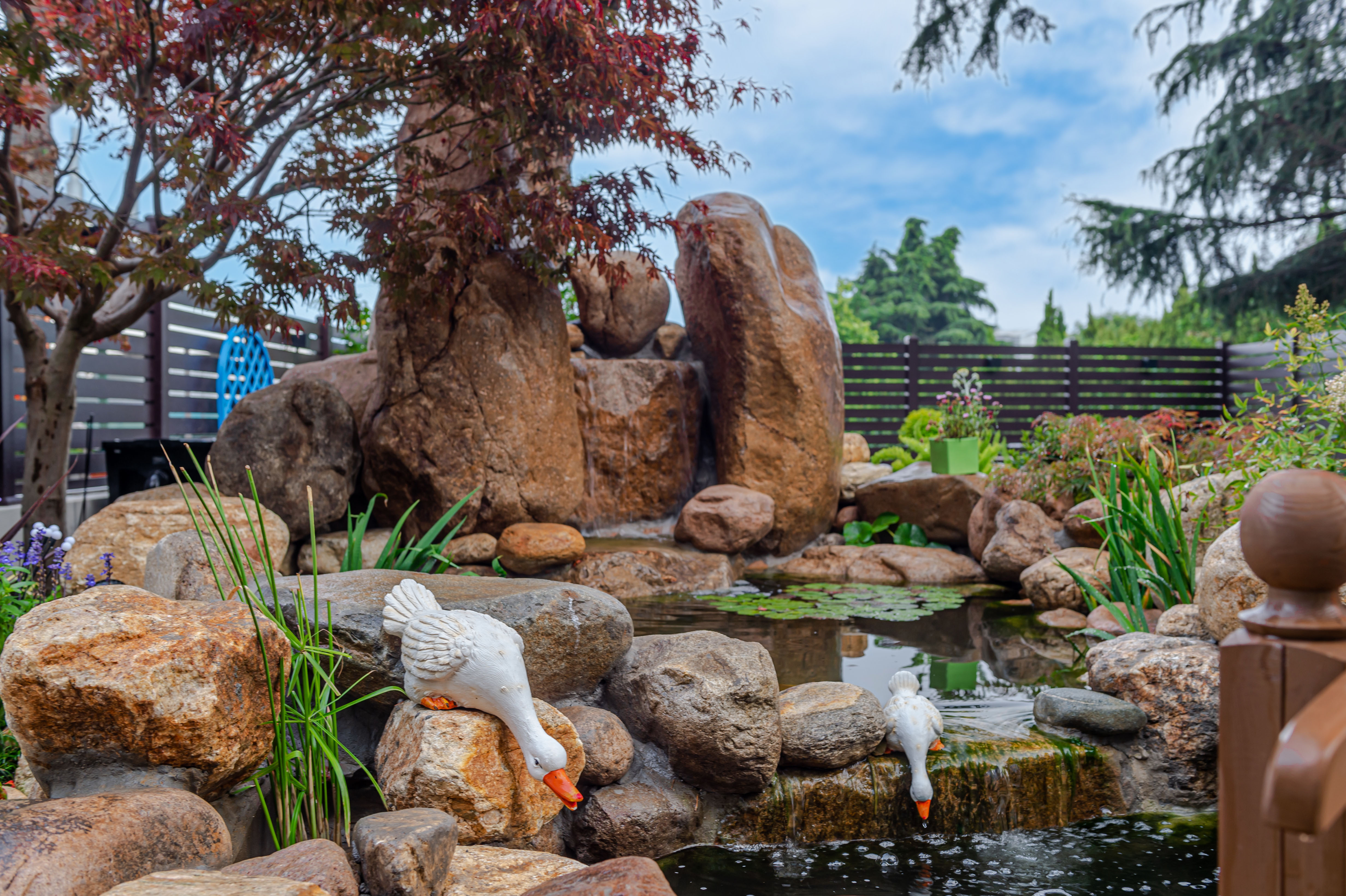 因男業(yè)主是理工科專業(yè),不喜歡過于人工化的產(chǎn)品,不喜歡直線,喜歡自然曲線且柔和的布局,所以我們將花園分為三部分: 休閑平臺、錦鯉魚池及后花園。出戶設計成大區(qū)域的木塑平臺,在午后慵懶的陽光下,享受自然的清新,感受小院的溫馨。