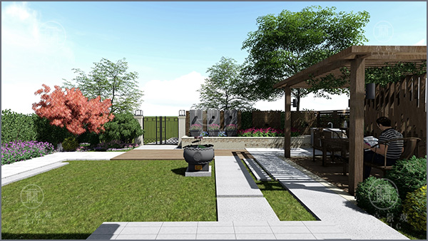 設(shè)計(jì)說(shuō)明:整體設(shè)計(jì)上給人以清爽雅致之感,寬敞的布局讓人更加舒適。廊架及木格柵以簡(jiǎn)約的造型為基礎(chǔ),加上中式的荷花青石缸擺件,空間層次更加豐富,大而不空、厚而不重,凸顯庭院生活格調(diào)。