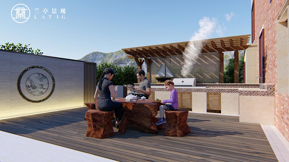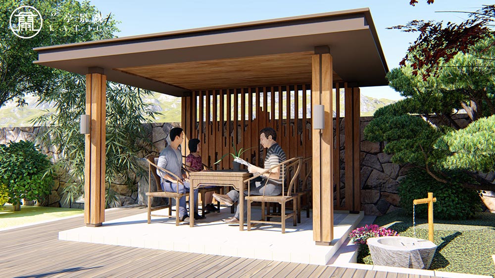 本案意在將“現(xiàn)代中式園林、禪意自然山水”相互穿插串聯(lián),通過新中式語言營造出“靜謐的安詳環(huán)境”。本園東側(cè)院根據(jù)其空間特性定義為活動健身區(qū),西北角為茶飲觀賞區(qū),北側(cè)花園將園林邊界取直后,空間感受繼而開闊大氣,結(jié)合傳統(tǒng)“背山面水”的風(fēng)水理念設(shè)置遠山小品。西側(cè)院人群主要針對老人使用,針對材料,樣式、以及具體尺寸進行優(yōu)化設(shè)計,使得本案體現(xiàn)出人文關(guān)懷。東南院的山水空間營造出入戶花園、山水田園的空間質(zhì)感,使得歸家的節(jié)奏更加溫馨。特選造型意在呼應(yīng)“清風(fēng)明月本無價 近水遙山皆有情”之意。