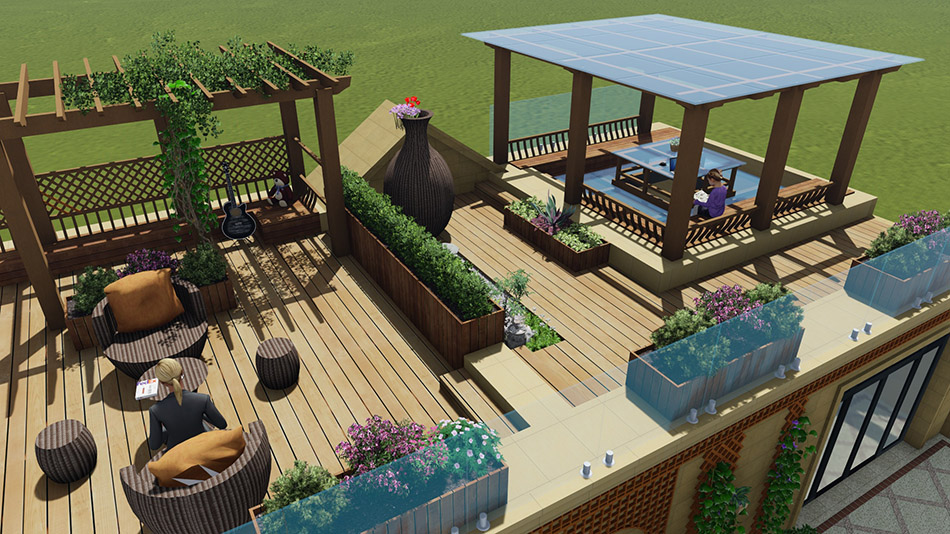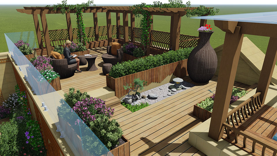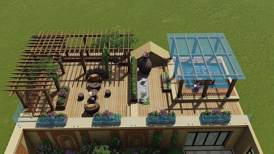 青島屋頂花園設(shè)計-綠城玫瑰園屋頂花園設(shè)計 屬性:庭院效果圖 庭院面積:500-1000㎡ 庭院設(shè)計風格:現(xiàn)代簡約 設(shè)計師: 董侃侃 瀏覽量:7209 發(fā)布時間:2016/12/21 13:21:53