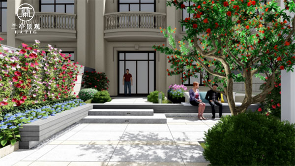 項目花園設(shè)計的定位是輕奢現(xiàn)代風,和室內(nèi)風格搭配的同時便于打理是初衷。