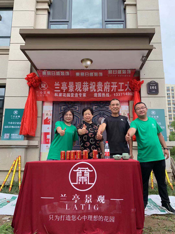 開工儀式上,到場同仁一一進行虔誠祈福,表達對業(yè)主新居未來愿景的美好祝福。同時蘭亭景觀庭院設計的工作人員與業(yè)主進一步對設計和施工細節(jié)進行現場溝通和確認,最后,各位項目人員和業(yè)主共同合影留念,記載下這一重要性時刻。在一片歡聲笑語中,開工儀式圓滿禮成!