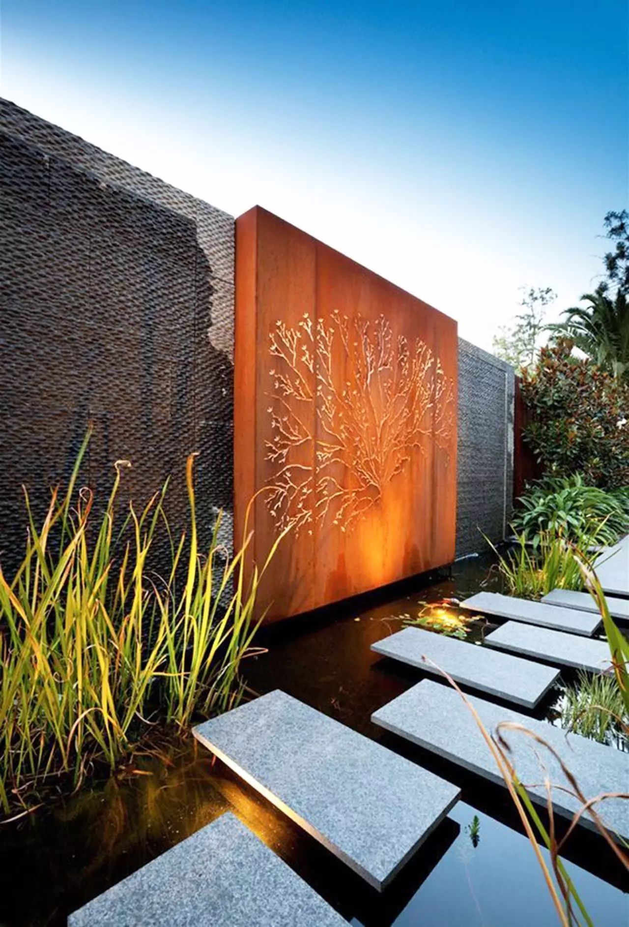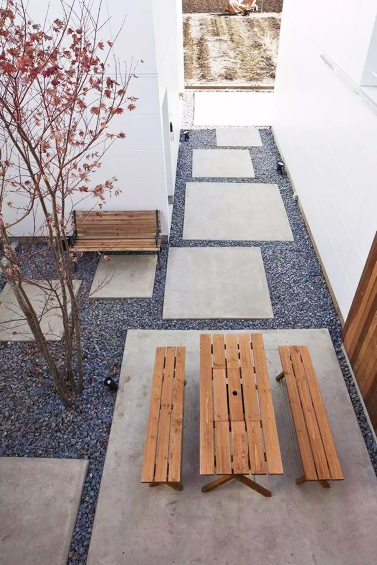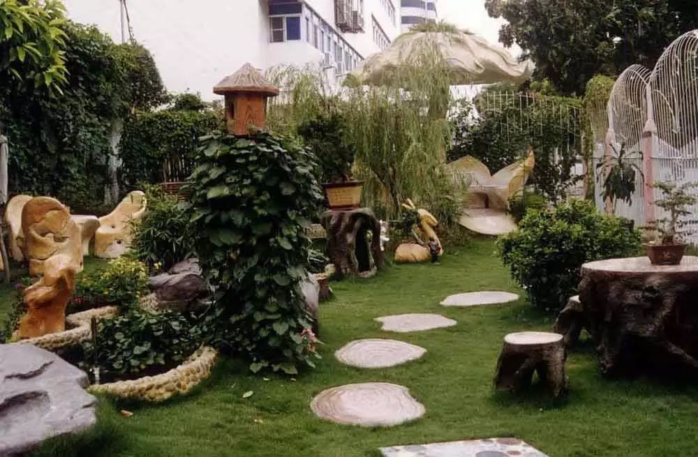 與沙礫結(jié)合的汀步,在形式上構(gòu)成變化和對比,在色彩上卻能很好的做到統(tǒng)一,使整個空間搭配和諧。