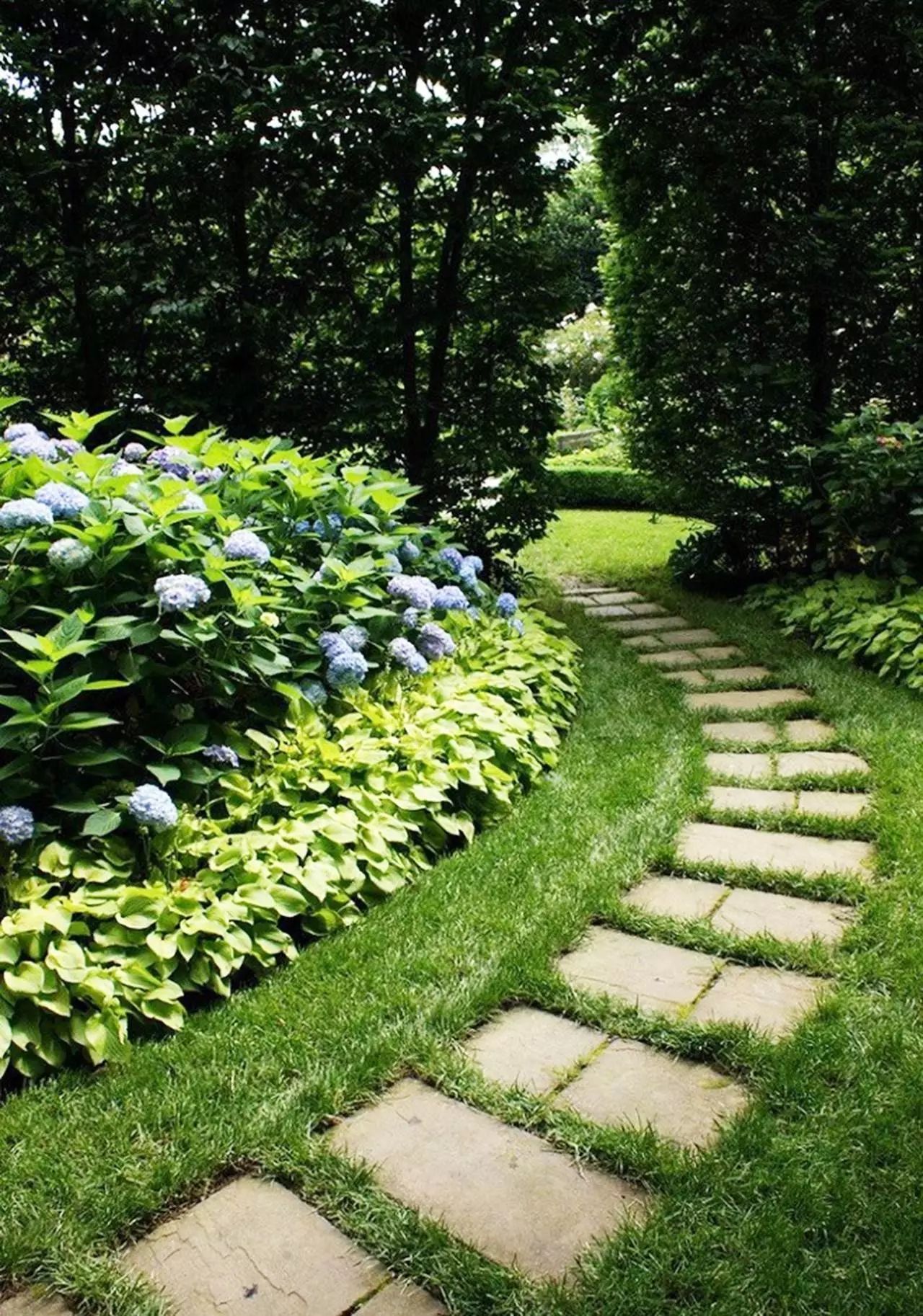 在狹長的空間中布置汀步,與草地很自然的融為一體,使整個空間不至于那么擁擠,而不規(guī)則擺放的汀步,又讓這條小道富于變化,也能保證草坪植被不被破壞,帶給人不一樣的自然體驗。