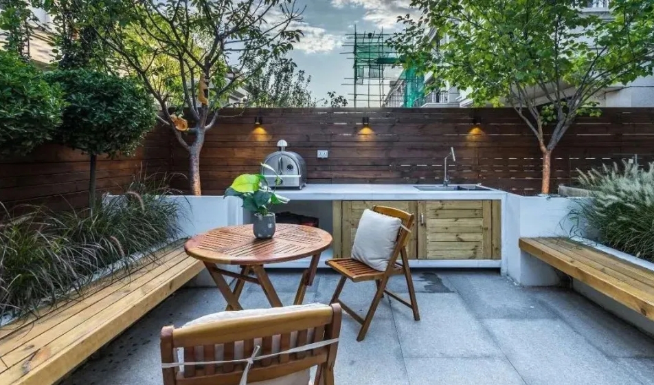 同時(shí),為了節(jié)省空間,也不應(yīng)設(shè)置一個(gè)10人座這樣大的桌子,而可采取內(nèi)嵌式、可伸展的桌椅。類似,比起以后可能長到三十多米高的大樹,不妨選用一些本土小型的植物和花草,讓后院有一個(gè)開闊的視野。