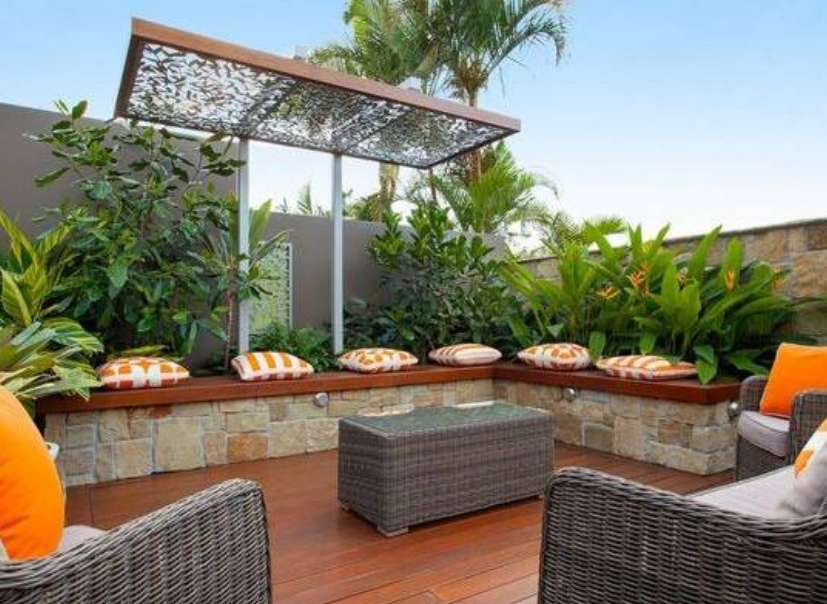 花園的休閑空間應當設在平地上,并帶一點坡度,以便能充分的排水。休閑空間的形狀可根據休閑的類型而確定。