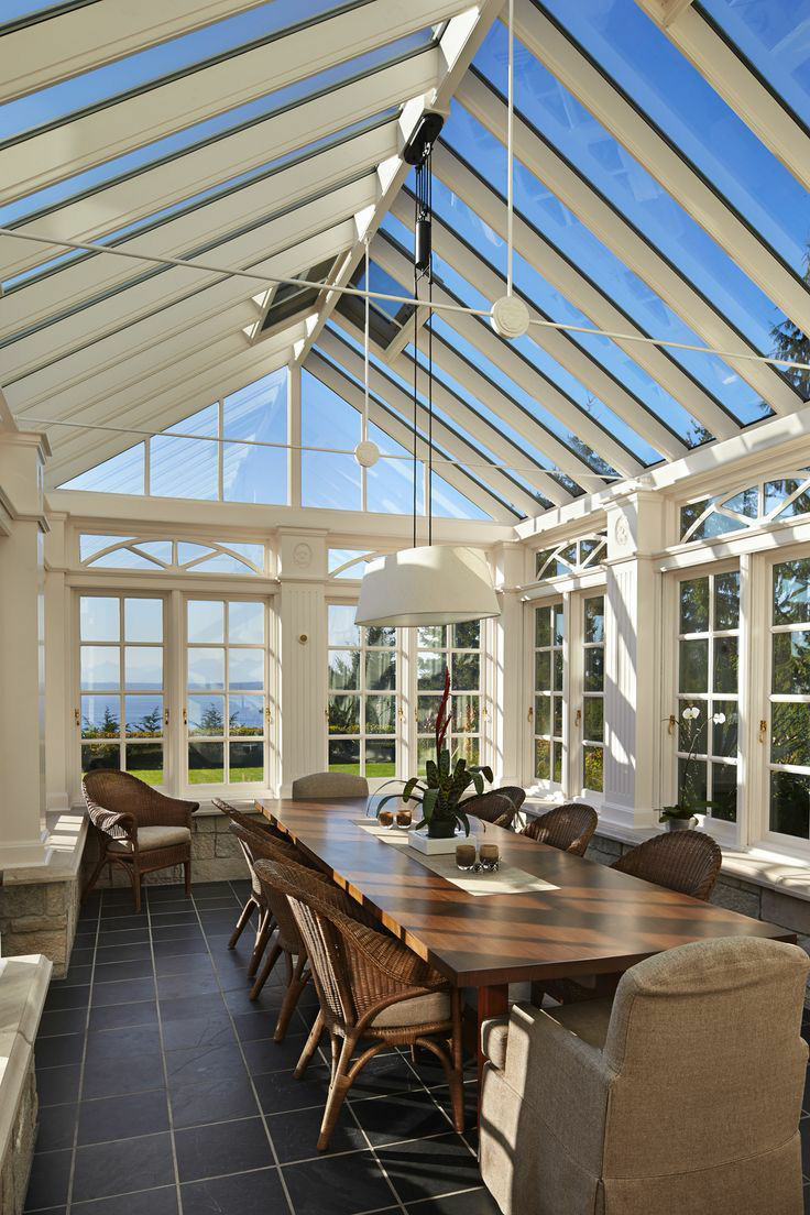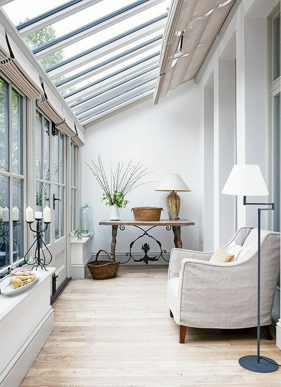 陽(yáng)光房的頂部安天窗,這樣配合窗戶使用,產(chǎn)生對(duì)流,熱氣能更好的排出室內(nèi)。
