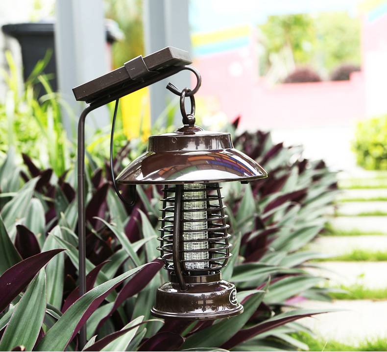 太陽能滅蚊燈是根據(jù)蚊子趨光、隨氣流而動、對溫度敏感、喜群聚等習性,研制出的一種環(huán)保無污染的高效捕殺工具。它無需外接電源,白天太陽能光伏板,吸收太陽光轉(zhuǎn)換成電能儲存在鋰電池中,晚上光線變暗后,自動開啟滅蚊功能,當蚊子碰撞到電網(wǎng)以后,電擊滅蚊。