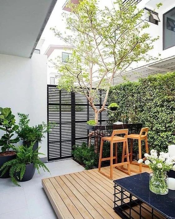 這是非常容易產(chǎn)生美學(xué)效果的部分,關(guān)鍵在于如何布置和搭配,同時(shí)中國(guó)人經(jīng)常擔(dān)心的是庭院的私密性,例如夏天在庭院納涼的時(shí)候,可以在院子里搭建花架,在花架下種攀爬植物,也可以設(shè)置封頂雨棚,既能提高私密性,又能遮風(fēng)擋雨更安全,還有一種禪意的感覺(jué)。