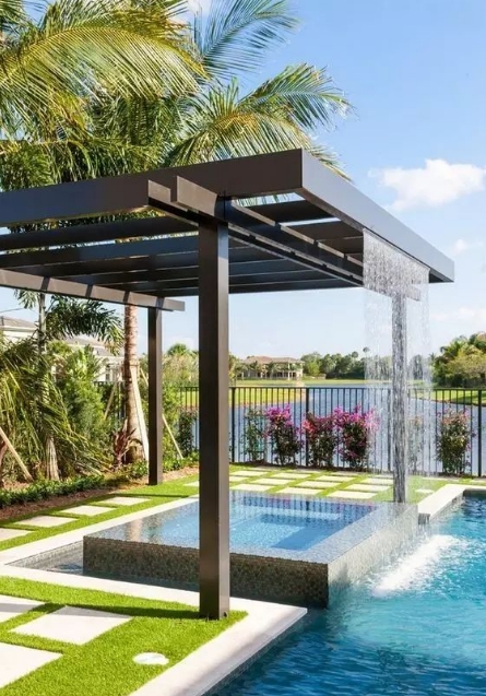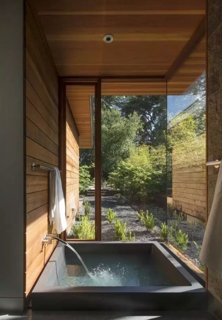 現(xiàn)代花園運(yùn)用的簡約線條,干凈明朗,讓泡澡也可以這樣美美的享受。