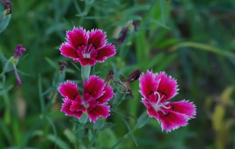 石竹是最典型的切花鑲邊植物,色彩繽紛,花期較長。植物花期:4~10月,集中在4~5月園林應(yīng)用:花色有白、粉、紅、粉紅、大紅、紫、黃、藍(lán)等,變化多。園林中主要用于花壇、花境、花臺和盆栽,也可用于巖石園和草坪邊緣鑲邊,大面積成片栽植時(shí)可作地被材料。