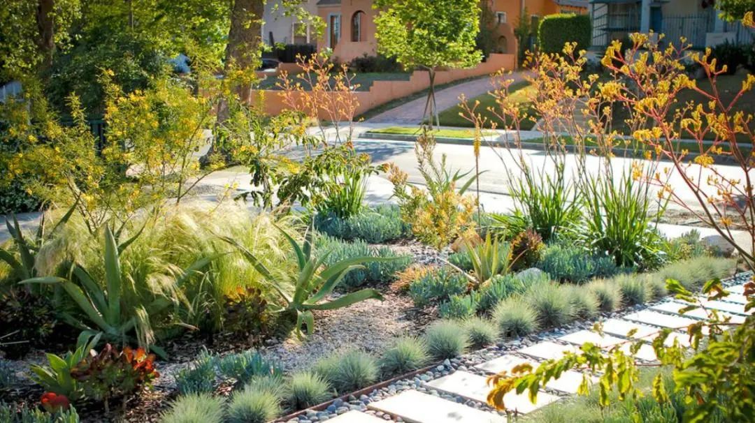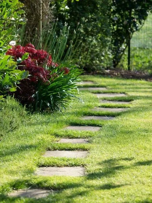 而不規(guī)則的汀步也頗有設(shè)計(jì)感,讓庭院的小道不再單調(diào)的同時(shí),也能保證草坪植被不被破壞,予人一種別樣的自然體驗(yàn)。