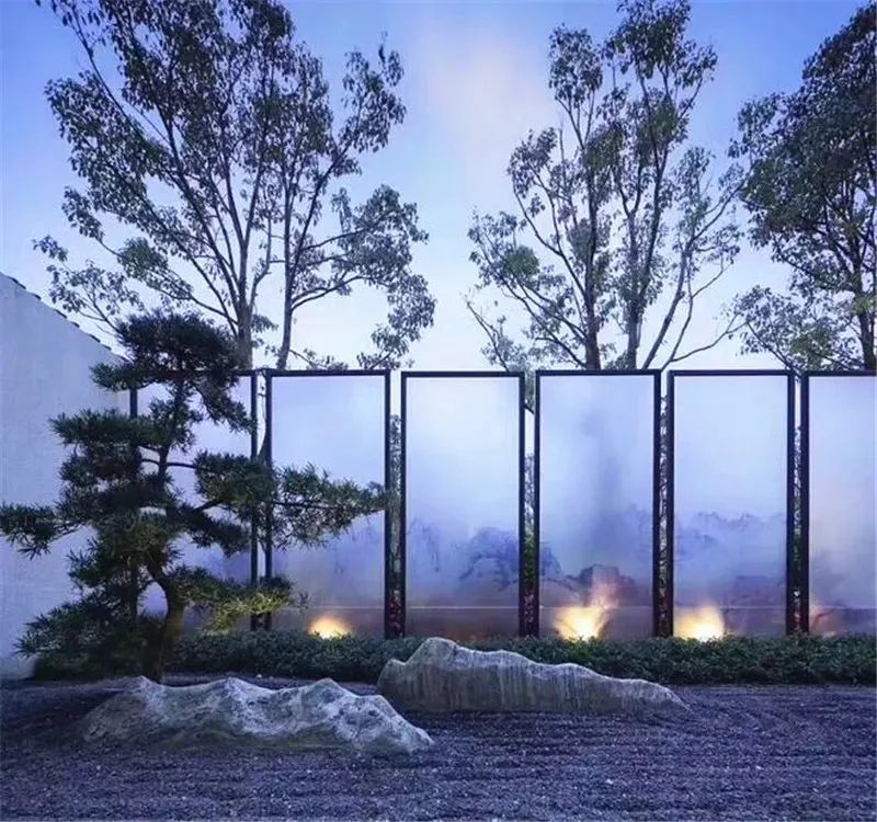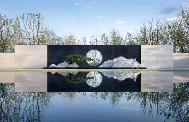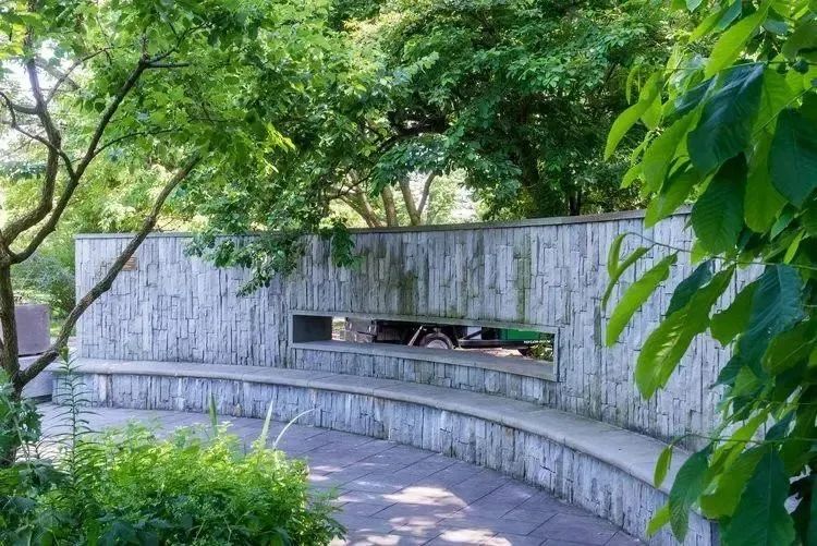即便是在實(shí)體的景墻上面框出很小的一塊空間,也能夠增強(qiáng)景觀的銜接性和透氣性。