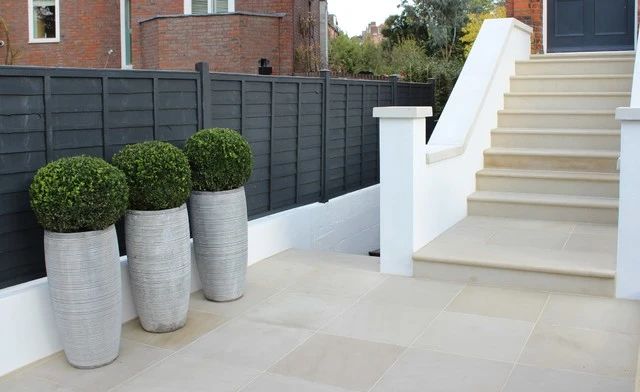 如果想為花園增添現(xiàn)代氣息,這種水平的寬板木圍欄是不錯的選擇。不僅能在視覺上擴(kuò)大花園空間,木板之間的留縫又能使花園內(nèi)外空氣相互流通。在圍欄前的種植池內(nèi)搭配高挑、細(xì)長的植物,能柔化木圍欄帶來了生硬感。