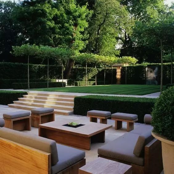 想要花園的空間更為通透,就可以使用這種寬縫的木圍欄,且以淺色為主色調(diào)。如第一張圖中灰白色的木圍欄與淺色的木地板、冷灰調(diào)的家具融為一體,更突顯周圍的種植空間。陽光能穿過木圍欄的縫隙,樹木和花草可在圍欄上留下斑駁的光影。日照庭院設(shè)計公司——蘭亭景觀為您介紹。