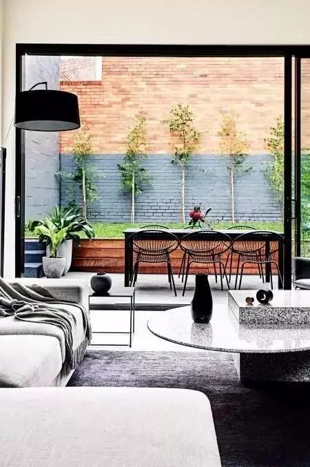 這種風(fēng)格注重實(shí)用功能,以“少就是多”為指導(dǎo)思想,強(qiáng)調(diào)室外空間形態(tài)和構(gòu)件的單一性、抽象性,追求材料、技術(shù)、空間的表現(xiàn)深度與精確。多采用藝術(shù)玻璃、簡(jiǎn)潔抽象的鐵藝,布藝選擇多以抽象的點(diǎn)、線、面為主。以求得更多共性,突顯現(xiàn)代簡(jiǎn)潔主題。