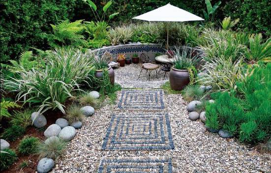 利用零散的石料做出的弧形紋樣,給空間增加了很多神秘感和趣味性,在石塊排列的部分,可以只堆放石子,還可以散鋪玻璃球、貝殼、糖果等讓人意想不到的裝飾物,會(huì)讓庭院更加藝術(shù)生動(dòng)。煙臺(tái)花園設(shè)計(jì)
