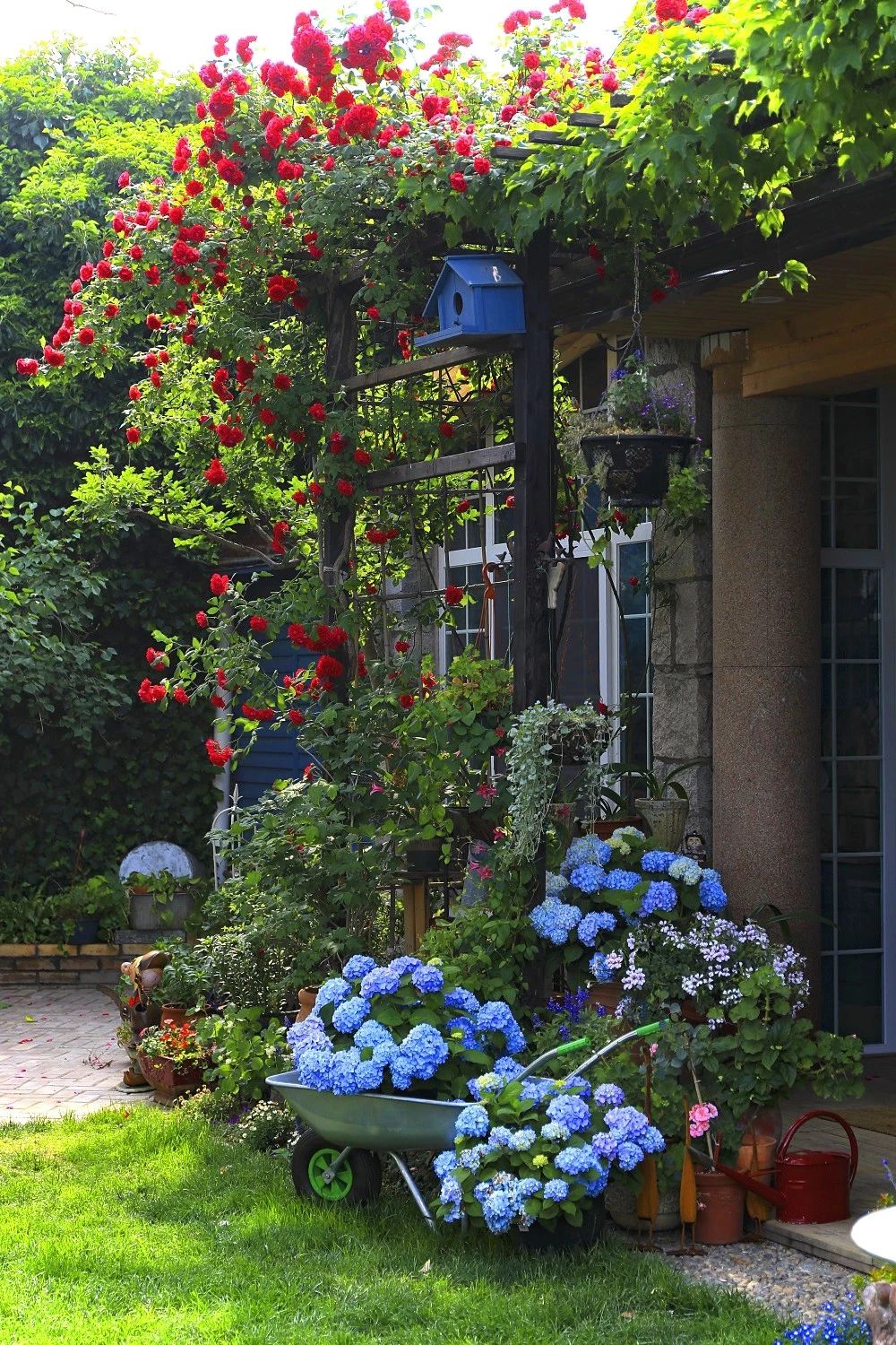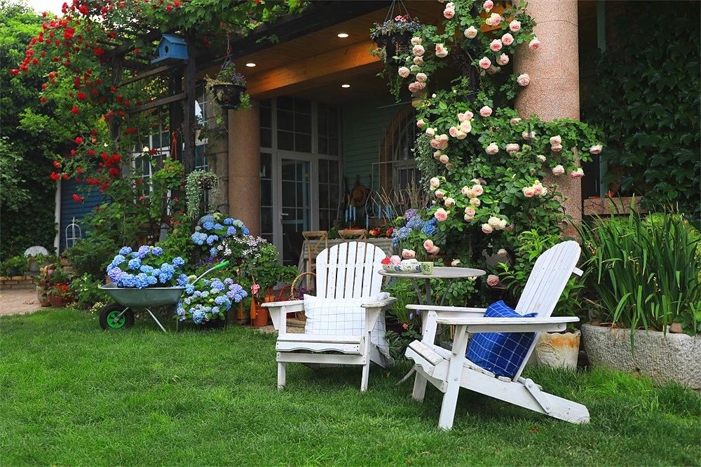 2、層次搭配:要合理配置喬木,灌木,多年生草本植物,一二年生草本植物,攀爬植物,水生植物,球根植物和草坪,才能讓庭院里的植物層次豐富美觀。