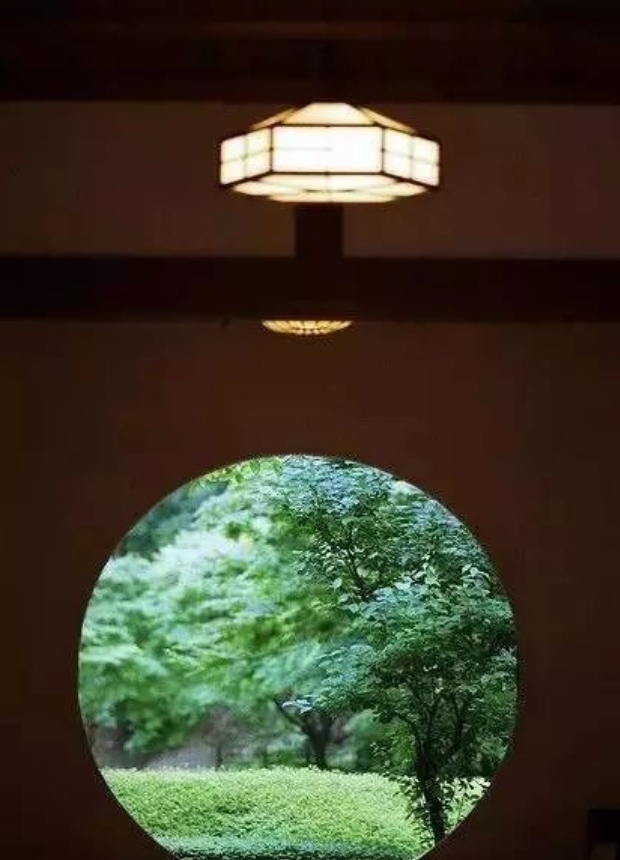 月亮門傳到了日本,簡(jiǎn)化了很多裝飾性的元素,形成極簡(jiǎn)的禪風(fēng)韻味,最為重要的圓形得到了強(qiáng)化。其中以鐮倉(cāng)名寺——明月院的月亮門最為嘆絕。可謂:一窗一世界,四季不同景。