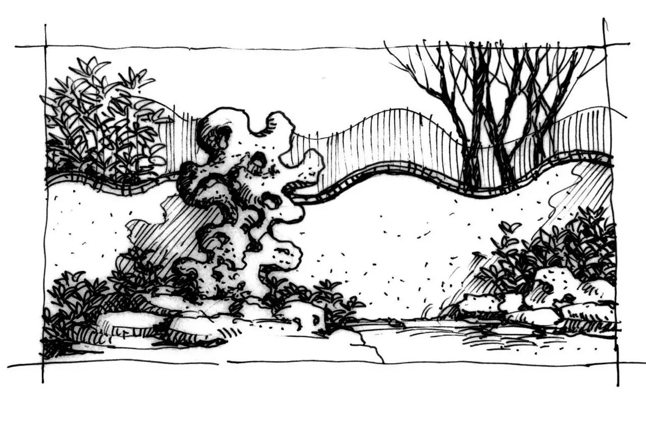 ——太湖石是在河湖中經水波蕩滌,歷久侵蝕而緩慢形成的,而冰裂象征的是冬天的湖水,通過抽象出氣象的特征,表達文人對冬日石頭與水之間關系的理解和體會。