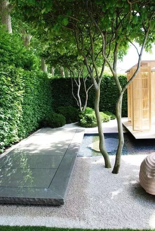 想要花園的空間更為通透,就可以使用這種寬縫的木圍欄,且以淺色為主色調(diào)。如第一張圖中灰白色的木圍欄與淺色的木地板、冷灰調(diào)的家具融為一體,更突顯周圍的種植空間。陽光能穿過木圍欄的縫隙,樹木和花草可在圍欄上留下斑駁的光影。青島別墅庭院設(shè)計