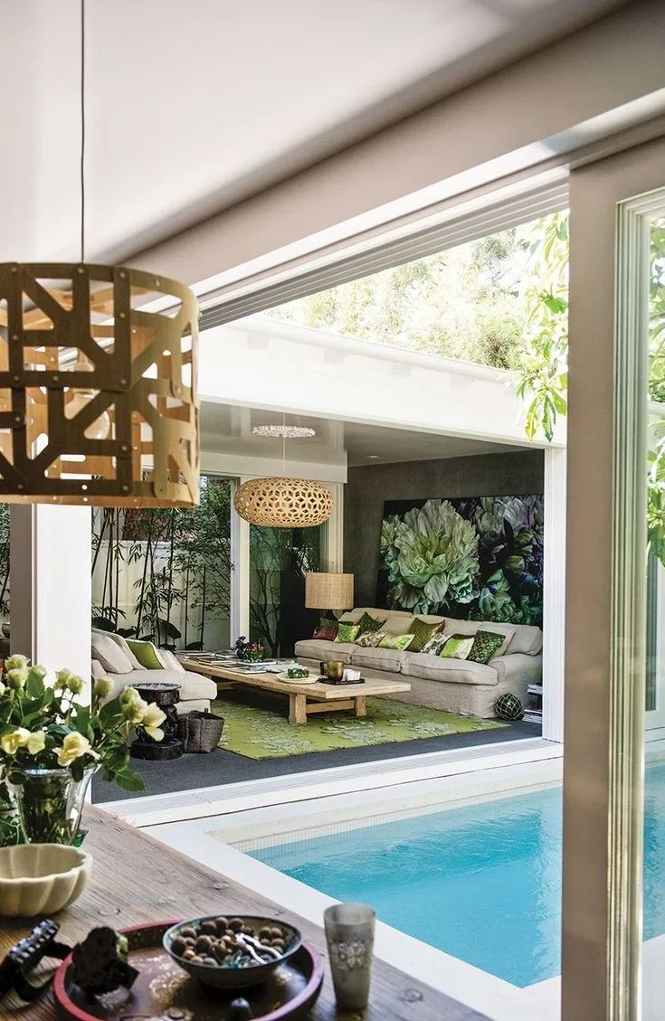在面向庭院花園的地方采用大面積落地窗或門,使室內(nèi)外更加通透,將自然光源合理的利用起來,窗內(nèi)是住所,窗外就是花園,整體的空間質(zhì)量完全提升了一個(gè)檔次。