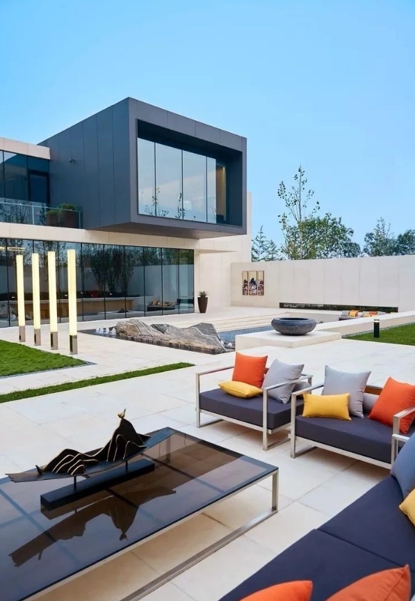 這種極簡主義的形式以及精神追求與設(shè)計(jì)的現(xiàn)代主義風(fēng)格不謀合,應(yīng)用枯山水的形式,將其進(jìn)行更加現(xiàn)代、創(chuàng)新的演繹使之更好的與建筑風(fēng)格融合,像一幅靜態(tài)的畫卷一樣成為洽談區(qū)的對景。用最簡潔的鋪沙形式加上發(fā)光亞克力球形燈,保留傳統(tǒng)枯山水形式的同時融入項(xiàng)目獨(dú)特的現(xiàn)代、時尚的調(diào)性。濰坊庭院設(shè)計(jì)