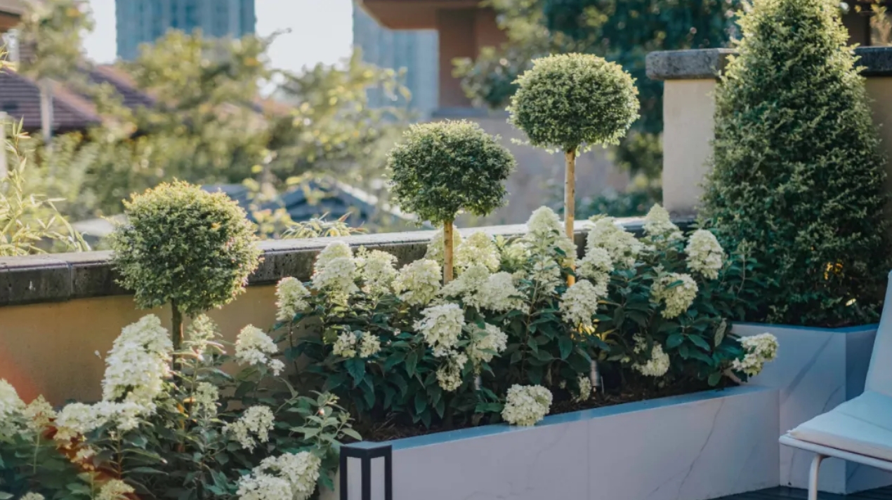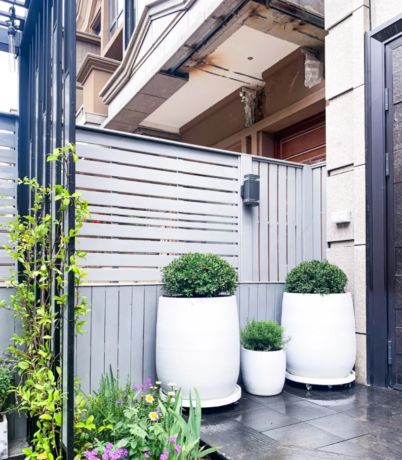 但做減法也并不是一味的對花園內(nèi)的元素進行消減。在植物的選擇方面,也可以適當?shù)卦黾右恍┖线m的植物來達到“化繁為簡”的目的。增添盆栽植物,這對于極簡風格庭院是一種是一種上佳的選擇,它可以根據(jù)你的需要適時的移動他們,使整個花園更具美感。