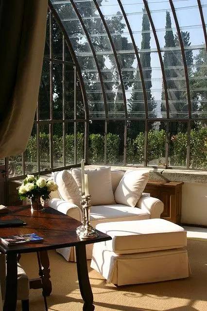 在晚歸的夜里,最好到陽光房的躺椅上小憩片刻。四周沒有隔斷野的墻壁,仰面能望得到天上的星星;是否會錯覺自己是躺在一艘小船上,向著亞得里亞海和愛琴海的深處漂流。
