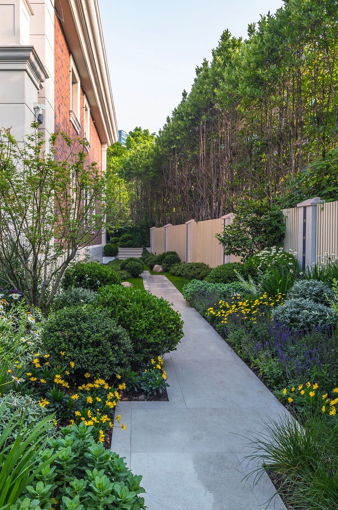 不同的路,采用了不一樣的方式表現(xiàn),有町步,也有平坦的石板路,旁邊是專業(yè)的花境設(shè)計(jì)師搭配的植物,讓業(yè)主可以在不同的季節(jié)都感受到春意。