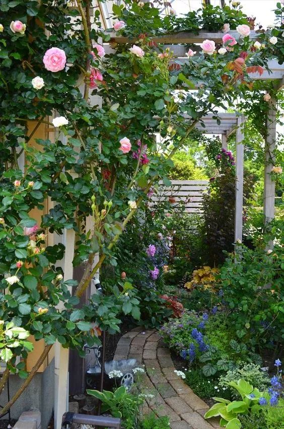 越是狹窄的地方,越是需要大型的硬件讓氣氛得到改善。如放置一個(gè)玫瑰拱門,遮擋住丑陋的電線桿或是鄰居家晾曬的衣物架,而把數(shù)只拱門連接起來,就可以提升整體環(huán)境的深邃感……利用花園硬件來創(chuàng)造出視覺魔法,進(jìn)一步提升小路的品質(zhì)。