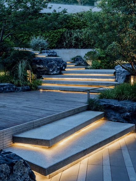 是一種安裝在地表以下的戶外照明燈具,可沿通道、人行道或車道安裝,以提供微妙的定向照明。也可放置在植物、花壇或水景附近,增強景觀或花園的美感和氛圍。青島花園設計