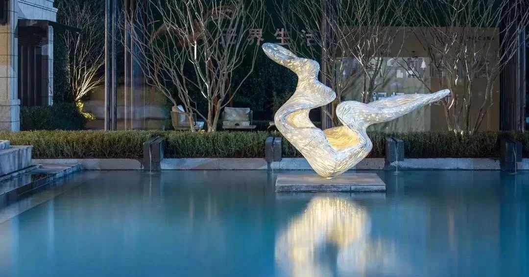 庭院水池的燈光設計可以用流動閃爍的燈光激活它的視覺效果,伴隨著水流聲植入音樂,制造夢幻的空間景象。