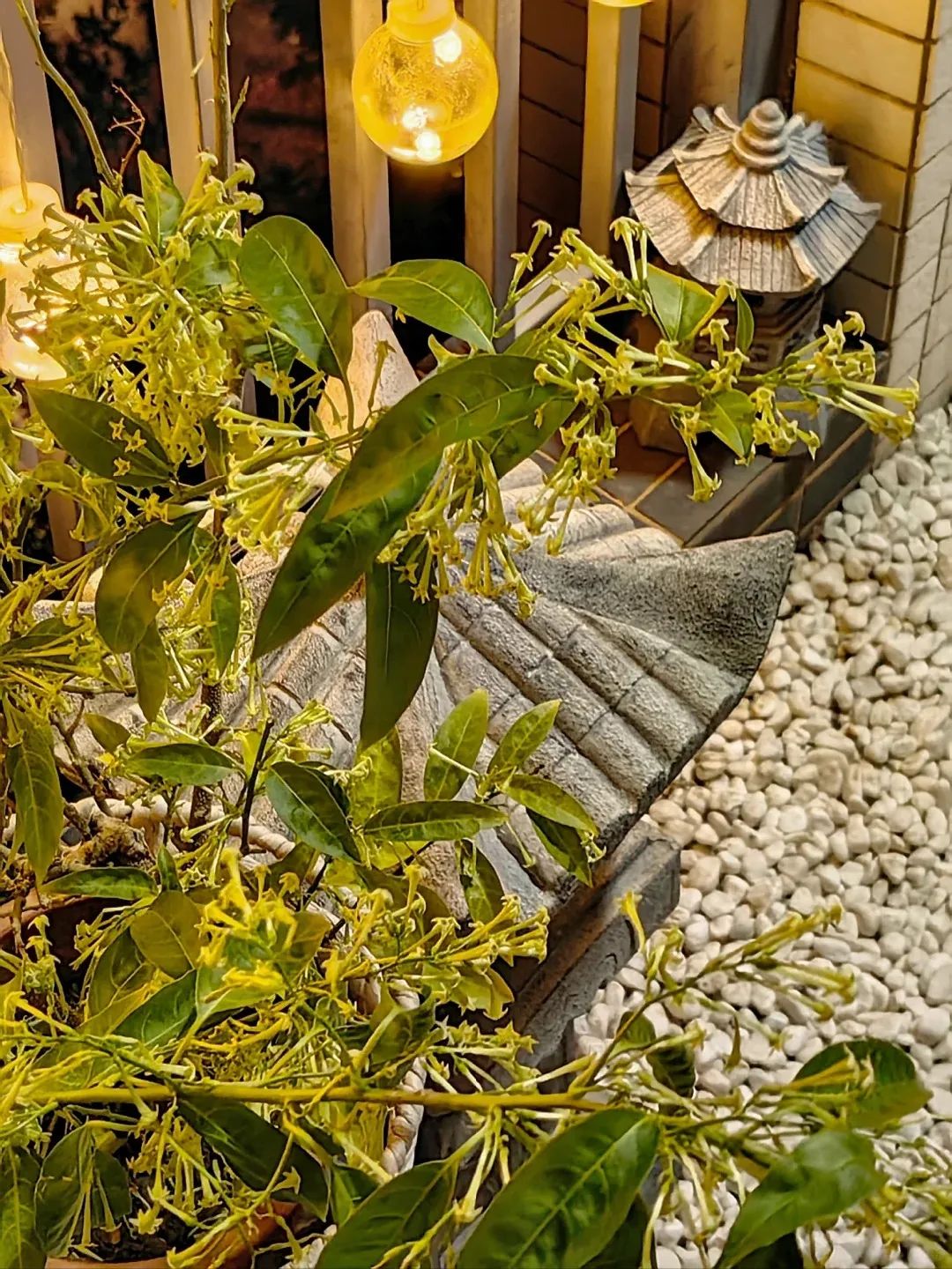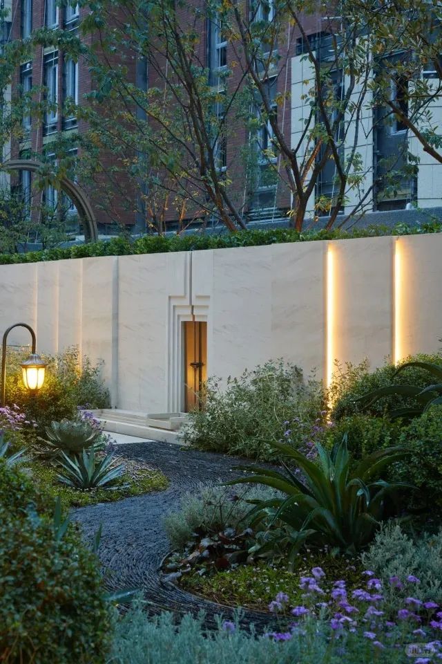晚香玉與梔子組成嗅覺(jué)矩陣,白花鬼針草與銀葉菊構(gòu)成反光群落,配合照明燈光,使庭院在夜間煥發(fā)珍珠般的光澤。