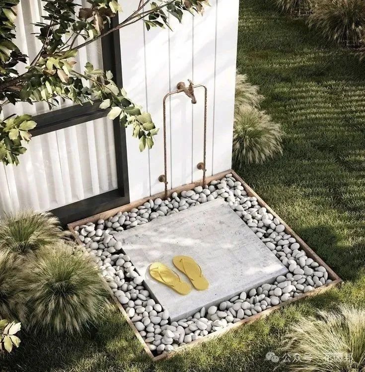 放松氛圍:注重遮陽(藤架、大樹)、靜謐性(水景、風(fēng)鈴)和私密性(綠籬、圍欄)。