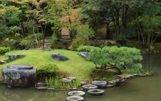 有水的地方,為了實(shí)現(xiàn)通人,通常會(huì)搭橋搭路,汀步是水景最常見的搭配做法。