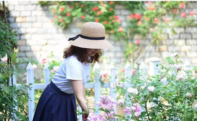 花園周圍設(shè)置白色柵欄,種薰衣草花環(huán)、歡笑格魯吉亞、黃金慶典、粉色達芬奇、西方大地、詹姆斯高威、佛羅倫蒂娜等爬藤月季。