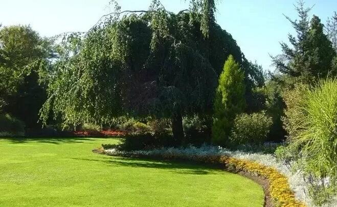 為了達(dá)到植物整體層次有一個(gè)很好的漸次過(guò)度的效果,高的植物高度不應(yīng)高于整個(gè)植物群寬度的2/3,如果是島狀植物群,則不應(yīng)該超過(guò)其寬度的1/2。