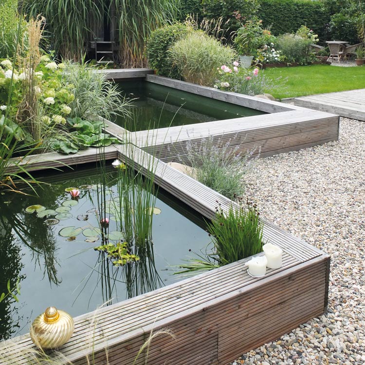最后,這套青島別墅景觀庭院設(shè)計的幾處水池曉得比較有趣,會讓人誤以為是用防腐木砌的水池。鋪裝區(qū)域也是大草坪和礫石搭配,植物以觀賞草為主,自然搭配,顯得頗有野趣。